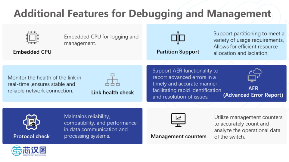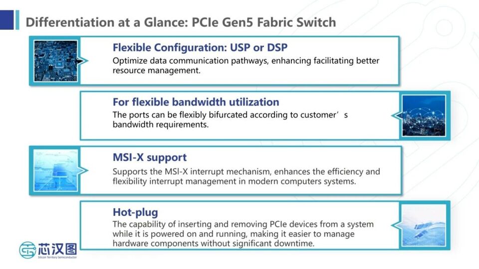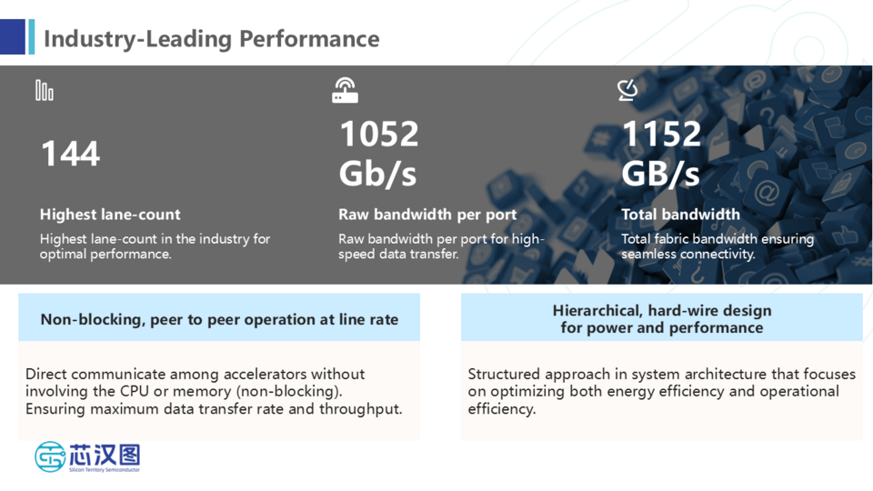此次展会公司携高速互联接口(PCIe Switch)产品方案亮相,以自主研发IP和系统级设计为核心,面向数据中心、人工智能等领域提供高性能、低功耗、可定制的芯片解决方案。针对行业高速传输和低延迟的需求,公司自主研发的高速互联接口芯片Fabric Switch XPS50144系列符合PCIe 5.0标准,具备弹性带宽和零阻交换等技术亮点,能够灵活适配AI计算及服务器互联等多样化场景,吸引了众多观众与业内专家关注。